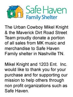 Mikel Knight has worked with the Safe Haven charity in Nashville for multiple years, and claims he’s given over $150,000 to Safe Haven as proceeds from street team CD sales. Saving Country Music has confirmed Mikel Knight has given donations to the charity, but questions linger if the percentage of CD sales street team members claim to collect per album is the same amount delivered to Safe Haven in Nashville. Lining up Mikel’s accumulated CD sales with the amount donated to Safe Haven, the percentages do not appear what Mikel Knight street team members say they are. Nonetheless, sizable donations have been made to the Nashville homeless shelter in Mikel Knight’s name.