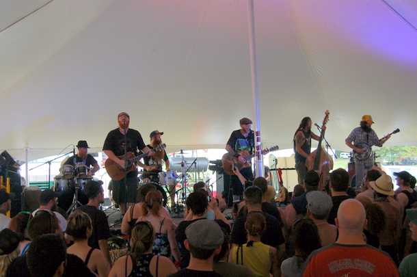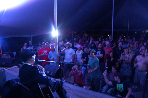8/31 6:15 PM – While we were gone, Filthy Still drew one of the biggest Stage 2 crowds I’ve ever seen at Muddy Roots, Lone Wolf OMB absolutely rocked it, and Husky Burnette is throwing the filthy blues down right now!