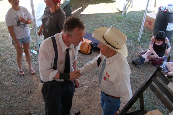 8/31 7:40 PM – Coolest picture of the fest yet. Little Jimmy Dickens and Don Maddox hanging out, getting ready for their sets on the main stage!