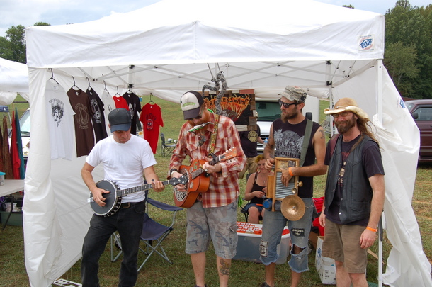 8/31 2:00 – Well the music doesn’t start for another 30 minutes, but folks have been jamming on vendor alley and in the campround all last night and today. Lone Wolf OMB found some jamming buddies!
