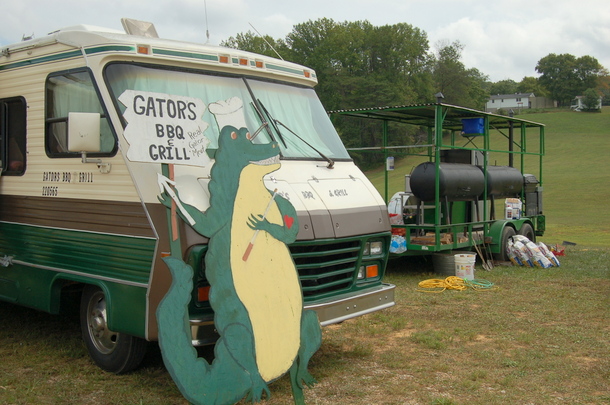 8/30 12:30 PM: Muddy Roots ain’t just about music, it’s got kick ass food too. The Gator man just finished setting up!