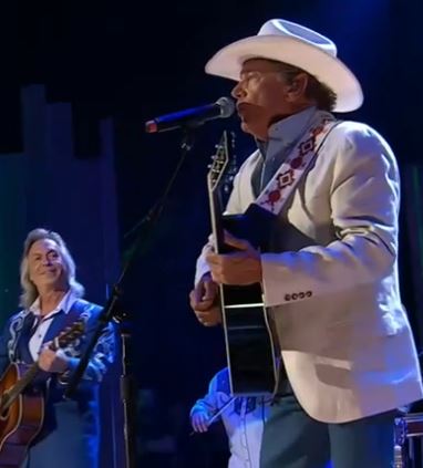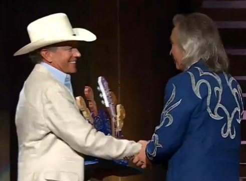 9:35 – Jim Lauderdale gets emotional accepting an award. What a big honor to receive it with George Strait standing on the stage with him.