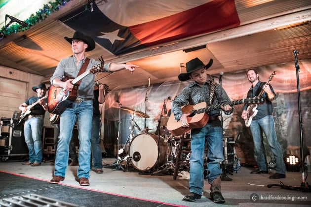 Aaron Watson brings young fan and guitar player named Anderson on stage to sit in for a song.