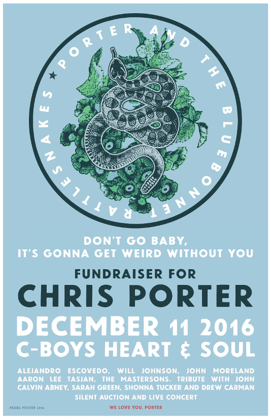 Being called “It’s Gonna Get Weird Without You,” Alejandro Escovedo, Will Johnson, John Moreland, Aaron Lee Tasjan, The Mastersons, John Calvin Abney, Shonna Tucker, Sarah Green, and Drew Carman will come together on December 11th at C-Boys Heart & Soul on South Congress in Austin, TX to benefit Chris Porter’s final project that is completed, but still needs some finishing touches before it can be released.