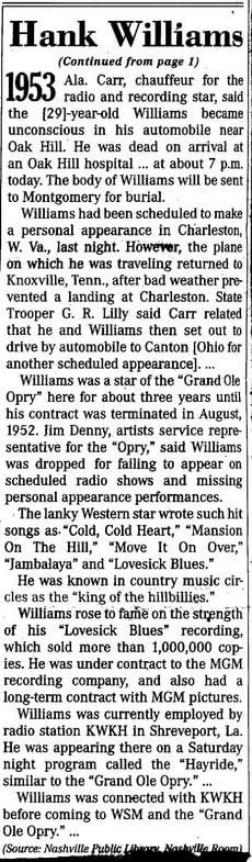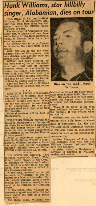 Country website features comprehensive archive on the death of Hank Williams « A Hank Williams Journal