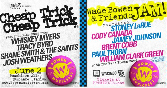 Playing the event this year will be Whiskey Myers, Tracy Byrd, Shane Smith & the Saints, Cheap Trick, and of course Wade Bowen in an ultimate friends jam that will include Jamey Johnson, Brent Cobb, Stoney LaRue, Cody Canada, Paul Thorn, and William Clark Green. Acoustic sets will also be performed by Jamie Lin Wilson, Courtney Patton, Joshua Ray Walker, Josh Grider, Drew Kennedy, and Shea Abshier.