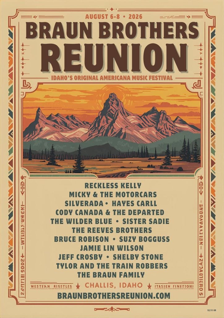 This year it’s all going down August 6th to 8th in Challis, Idaho, not exactly convenient to anything, but far enough away from everything to give you a true getaway experience in the American West, while also taking in some excellent music. The Braun Brothers Reunion has now been going on for over 40 years.