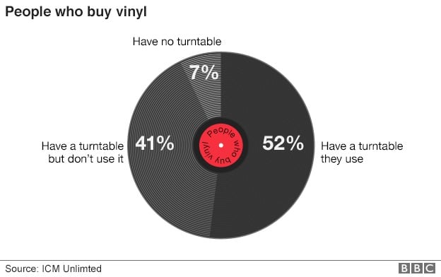 This is all well and great, but a recent study by ICM Unlimited says that many of the people who purchase vinyl records actually have no intention of ever listening to them. Some of these consumers never use their turntables, and some don’t even have turntables at all. It’s more about simply owning the physical product, supporting their favorite artists, or perhaps even an element of fashion to own vinyl that’s driving the market.