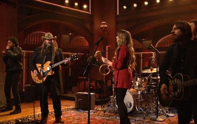 chris-stapleton-saturday-night-liveSpeaking of radio play, Stapleton performing “Parachute” on SNL is probably a good indication this could be the next single off of his blockbuster album Traveller. His current single “Nobody To Blame” was the second song Stapleton performed. Notables joining Stapleton on stage were producer Dave Cobb on acoustic guitar, Robby Turner on keys and steel guitar, and his wife Morgane on backup vocals.
