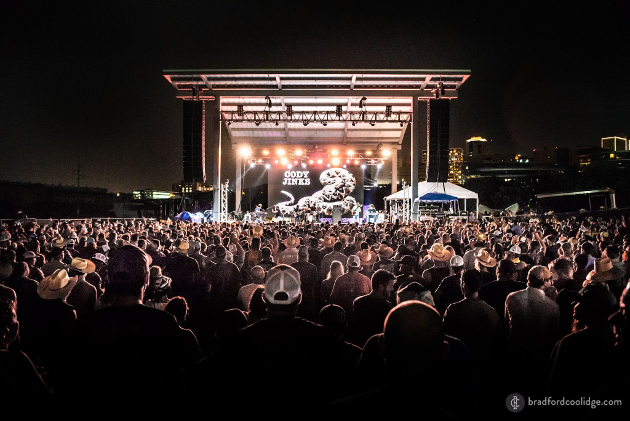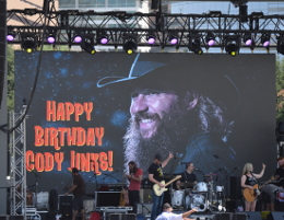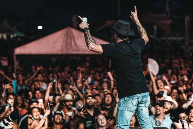 Cody didn’t take long to make an appearance. After Ward Davis introduced the song “I’m Not The Devil” he co-wrote with Cody, Jinks showed up on stage to help sing it himself. After the song, the crowd erupted into a spontaneous (and surprisingly in-sync) rendition of “Happy Birthday” for Jinks. They would do this again during Cody’s headliner set after his crew presented him with a Buck Owens-style red, white, and blue guitar signed by the current roster of the Texas Rangers baseball team. Raised in Haltom City (a suburb of Ft. Worth), the Panther Island Pavilion right on the banks of the Trinity River where Loud and Heavy Fest took place was home turf for Cody. The local radio station 95.9 The Ranch and DJ Ben Ryan were early adopters of Cody’s music, and so were the Ft. Worth faithful.
