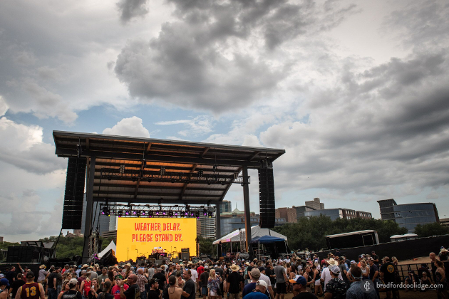Paul Cauthen brought his gospel sermon to the mix, and Nikki Lane delivered her throwback-style set to appreciative fans right before there was a short delay for weather moving through the area. One big concern for Loud and Heavy was the wisdom of throwing a festival in the middle of August in Texas. The early sun was almost unbearable, but during Nikki Lane’s time slot, skies clouded up, giving some respite to the swelling (and sweating) crowd. After about an hour of delay due to a threat of severe weather that never developed, music resumed, but a very light rain fell for the rest of the fest—a very welcomed relief for attendees, and making the heat much less of a factor.