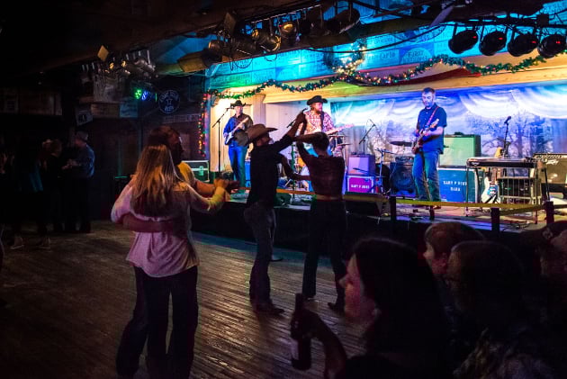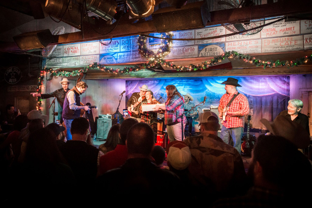 If for no other reason than writing “London Homesick Blues,” which for many years was the theme song for Austin City Limits (and still should be), Gary P. Nunn is like a Texas country patron saint, and the people turned out to Gruene Hall to celebrate his birthday in style. So did Brad Coolidge of Bradford Coolidge Photography, who was nice enough to share some of his amazing photos of the festivities with us at Saving Country Music. Also in attendance and opening the show was Silo Road, who got Gruene Hall’s legendary dance floor decked out in holiday regalia up and running with two-steppers.