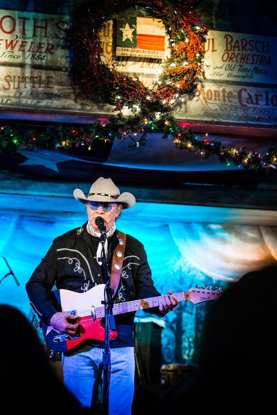 It doesn’t get more Texan than Gruene Hall or Gary P. Nunn, unless you combine the two, which is what happened when the venerable songwriter—whose participation in the bands of Rusty Weir, Michael Martin Murphey, Willie Nelson, and of course the Lost Gonzo Band with Jerry Jeff Walker for so many years made him a super legend throughout the Lone Star State—stopped by one of his favorite Texas haunts on Saturday, December 3rd celebrate 71 years alive and breathing on this mortal coil.