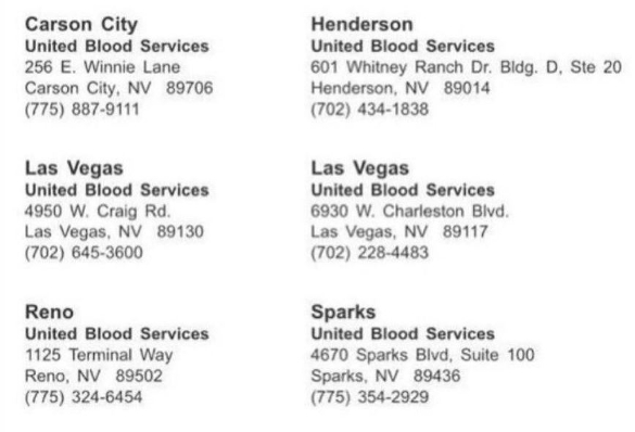 12:40 – Places where you can donate blood locally in the Las Vegas area. Obviously you can donate blood anywhere, any time to help in situations like these.