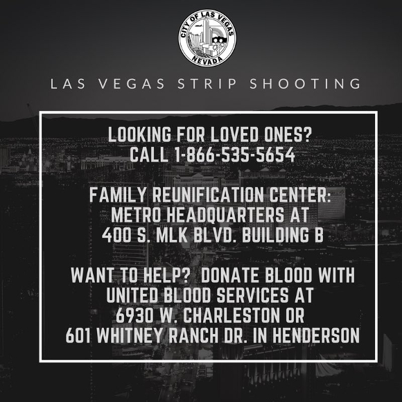 11:20 – Local authorities are saying the greatest need, especially in the Las Vegas area is donations of blood.