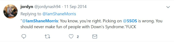 The link in the Nashville Scene update leads to a Tumblr account, but there is no content on the page. However Tumblr is one of the places fans of bands such as Fall Out Boy, 5 Seconds of Summer, Twenty One Pilots, and others would often aggregate screenshots of the death threats, discriminatory language, and other abuse they would suffer at the hands of Shane Morris. Sometimes the content was removed after Shane Morris would further threaten them if they did not comply.