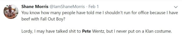 Shane Morris has yet to correct or clarify any of the misinformation in his Twitter posts, nor has anyone in the media aside from Saving Country Music attempted to do so for him. His verifiably inaccurate posts continue to remain live, and are still receiving traction and retweets on the Twitter format, along with continuing to feed misinformation rebroadcasted in the press. Furthermore, the above tweet is representative of how Morris commonly illustrates contempt for “red state” dwellers, and is very active in commenting on politics, regularly with contempt for Republicans and conservatives, while labeling country music as a haven for these affiliations. Shane Morris has a very plausible motive for lying about the level of racism in country music since he clearly sees it as an institution allied with his political enemies. For a short period Shane Morris claimed he would run for Congress to replace retiring Tennessee Senator Bob Corker.