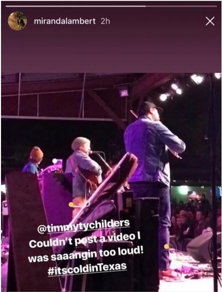 But the most famous performer in attendance Saturday night might have been standing to the side of the stage instead of on it. According to Miranda Lambert’s Instagram feed, she was ringside to watch Tyler Childers (and the others) entertain the sold out crowd. “@timmytychilders Couldn’t post a video I was saaangin too loud! #itscoldinTexas,” Miranda posted. Central Texas experienced an unusual mid spring cold snap on Saturday, putting a chill in the air of the outdoor event.