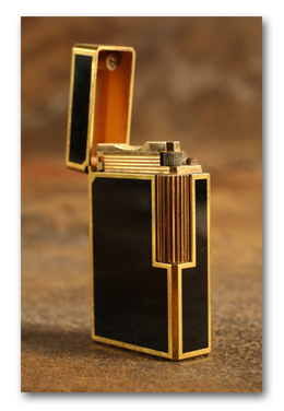 Engraved ST Dupont Black Chinese Lacquer and Gold Lighter c. 1970s