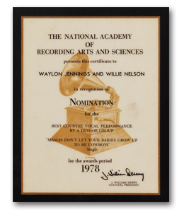 Nomination Plaque for “Mamas Don’t Let Your Babies Grow Up To Be Cowboys”