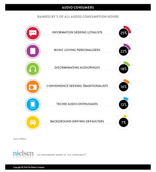 Nielsen broke down listeners into six distinct categories: