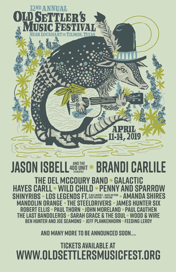 The 32nd Annual Old Settler’s Music Festival is set to transpire April 11th thru 14th in Central Texas once again, and they just released their initial lineup, capped by a special acoustic set by Jason Isbell and the 400 Unit, as well as a performance by Brandi Carlile. Along with top flight bluegrass performers like Del McCoury Band and The Steedrivers, and Americana greats like Hayes Carll and John Moreland, there will be plenty of up-and-coming acts to discover as well. 21 acts have been announced so far, with more on the way.