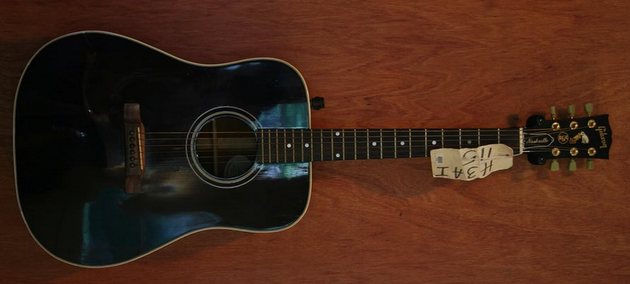 The two guitars that are still missing for sure are the Martin D-28 Acoustic, and the Gibson Black J-30 acoustic. See pictures below.