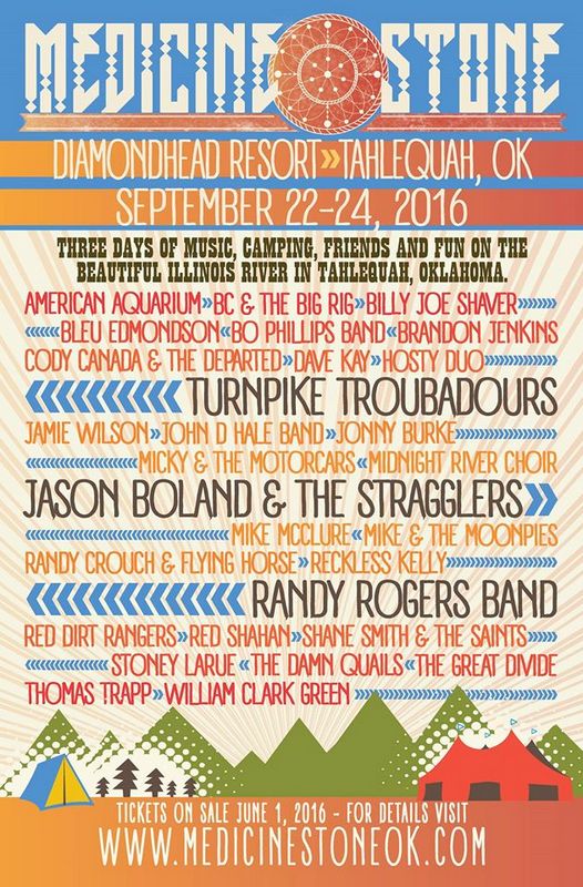 On Monday (5/2), one of the fastest-growing festivals on the Texas country and Red Dirt circuit called Medicine Stone announced their 2016 lineup. Set to happen September 22-24th in Tahlequah, Oklahoma, it features a eye-popping amount of regional talent, including hosts the Turnpike Troubadours, Jason Boland and the Stragglers, Randy Rogers Band, Billy Joe Shaver, American Aquarium, Stoney LaRue, Shane Smith and the Saints, and many more (see full lineup below). If you’re looking to get a snoot full of the the most viable alternative to the monopoly the mainstream country music industry in Nashville has tried to shove down your throat, this would be a good place to start.