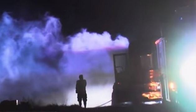 Jim Heath, known as The Reverend Horton Heat, was the first one to detect the fire, and had to wake up his sleeping band and crew members to get them out. Fire crews from nearby Camp Pendleton responded quickly to the blaze.