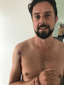 Sanders was lucky. Nice clean hole, the bruise. Good thing it didn’t open a vein or shatter any bone. Hope they get the guys who did it. As for Sanders, he now has a barstool story for the rest of his life. From the photo, it looks like he half-feels good about it. “What doesn’t kill you makes you stronger,” so they say.