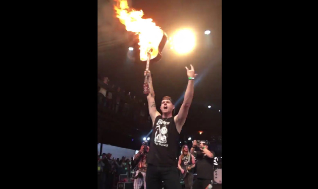 I’ve been going to concerts for over 30 years, in many genres including punk rock, and I have never seen a person smash a flaming guitar and bang his chest. Looks like a one of those pro wrestling clown moves to pump up a crowd during fake entertainment.