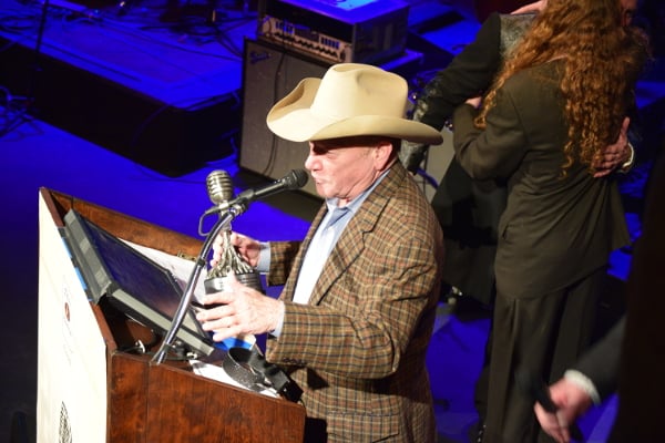 9:01 – Dale introduces the lovely ladies to handle the awards, and Gary P. Nunn accepts his Honky Ton Group award for his Bunkhouse Band.