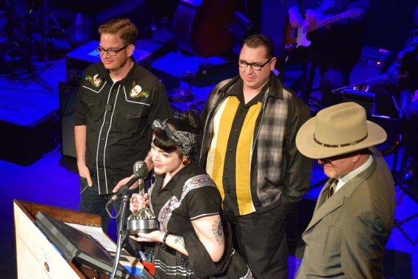 10:52 – Laura Hope accepting her Rockabilly Female Award, and Jason Roberts on the Ameripolitan stage.