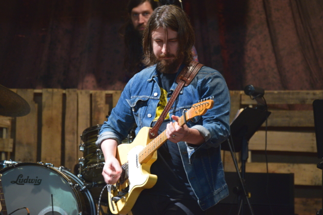 Steve Earle and Buddy Miller. Dave Cobb wearing a James Brown T-Shirt in the background.