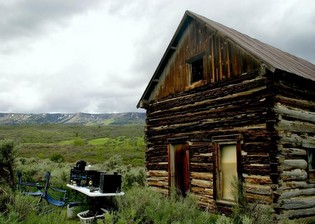 Wanting to instill the recording with the authenticity and inspiration that gave rise to the songs, the initial plan was to record Giving My Bones on location outside in a desert canyon near the ghost town of Dewey, Utah. However this romantic notion ran into some very practical problems from the wind that prevails in this setting, so Slackeye relocated his mobile studio to an old abandoned homestead outside of Mesa, Colorado, with the Grand Mesa looming in the distance. There, Giving My Bones to the Western Lands came into being.