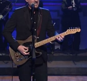 When Sturgill walked out with his worn Telecaster strapped over his shoulder as opposed to his acoustic guitar, you knew it was on. Along with it’s faded paint job, the Tele was also rocking the Rebel insignia from Star Wars, perhaps an homage to the host of the episode, Felicity Jones of the recent Rogue One movie.