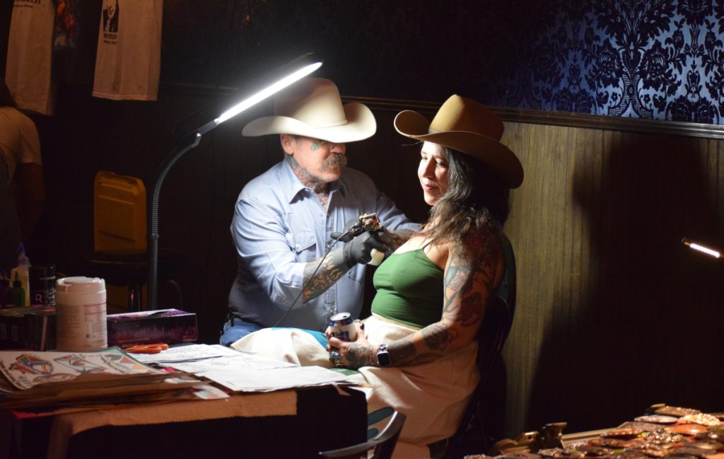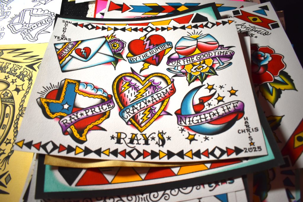 At the Sagebrush in Austin Sunday afternoon, it was like the Golden ’60s of country music never ended. The two-steppers were out in force, as were a lot of other Austin country musicians wanting to show their support for the memory of Ray. Steelradio.org was also there, as was a tattoo artist inking Ray Price-specific tattoos, along with custom “Everyday I’m Shuffling” merch available to mark the occasion.