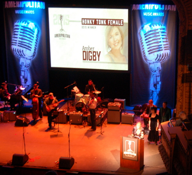 9:42 – Amber Digby and The Derailers accept their Ameripolitan Awards. Sorry for the fuzzy faces. My perch is far, and no flashes allowed.