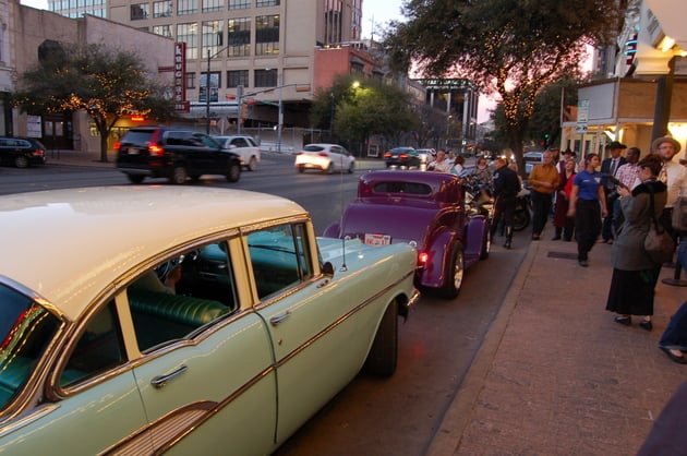 I love how they ride to the event in vintage cars instead of limos. Now that is riding in style.