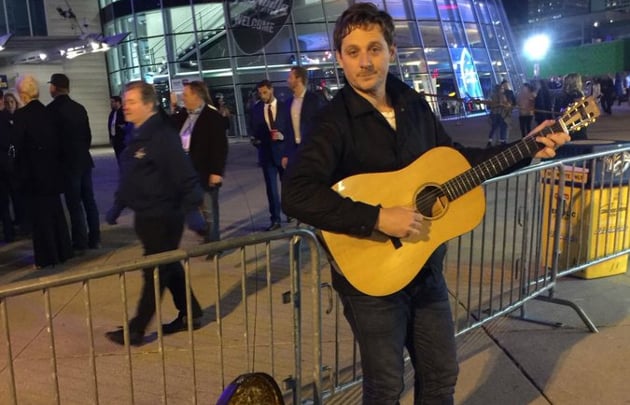 As the CMA Awards were transpiring Wednesday (11-8) night inside the Bridgestone Arena, Sturgill Simpson decided to take his guitar, his Grammy for Album of the Year from 2016, and do a busking set in front of the arena as local journalist Adam Gold broadcast the whole thing via Facebook Live. The entire episode lasted about 45 minutes, with Sturgill Simpson taking questions, and playing a few songs.