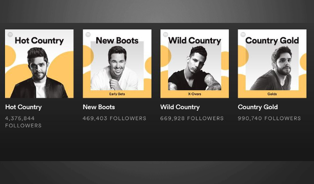 Spotify, for example, has four major country music playlists which are curated by the company itself, and which land at the very top of searches when users go to look for something country to stream that isn’t a specific album, song, or artist. These four playlists are: