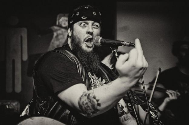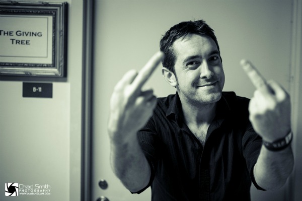 Jeff Austin of the Yonder Mountain String Band doing the double bird (Chad Smith Photography):