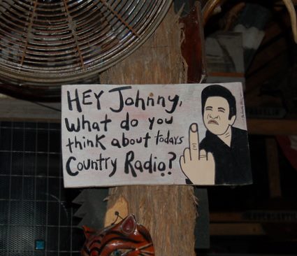 A sign hanging up in the Johnny Cash themed bar and music venue in Austin, TX called the Mean Eyed Cat.