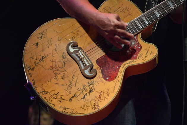 Nice close up shot of Jamey’s guitar. At the CMA’s or ACM’s years back he performed “Give it Away” which he wrote at the George Strait artist of the decade thing and he brought it up to George Strait on tv and had him sign it