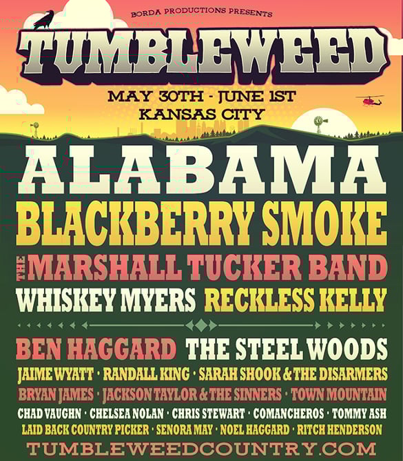The Tumbleweed Music Festival set to take place just outside of Kansas City May 30th through June 1st has just announced their full lineup for 2019, and this year’s installment will have a strong Southern rock flavor to it. Included in next year’s lineup will be Country Music Hall of Famers Alabama, Southern rock legends The Marshall Tucker Band, along with Southern rock present-day mainstays Blackberry Smoke, Whiskey Myers, The Steel Woods, and Jackson Taylor and the Sinners.