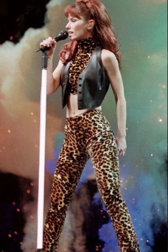Don’t panic folks! No endangered cheetah’s were injured in the making of Shania’s outfit, just the integrity of country music!