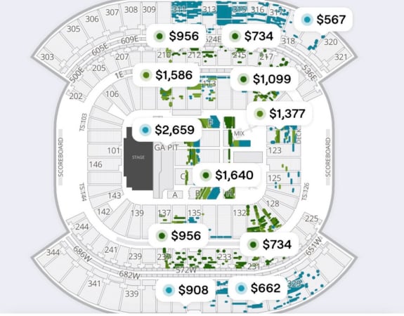 Even if/when fans are able to get through, many are being sticker shocked by the exorbitant prices that are not even resale inventory at this point, but the face value price. The cheapest ticket registered is $350 for corner seats in the upper stadium section, with many of the upper deck tickets going for $567 or $576, and some going for as much as $908. Front GA access is going for $2,659, with most lower bowl and floor tickets going for well over $1,000.