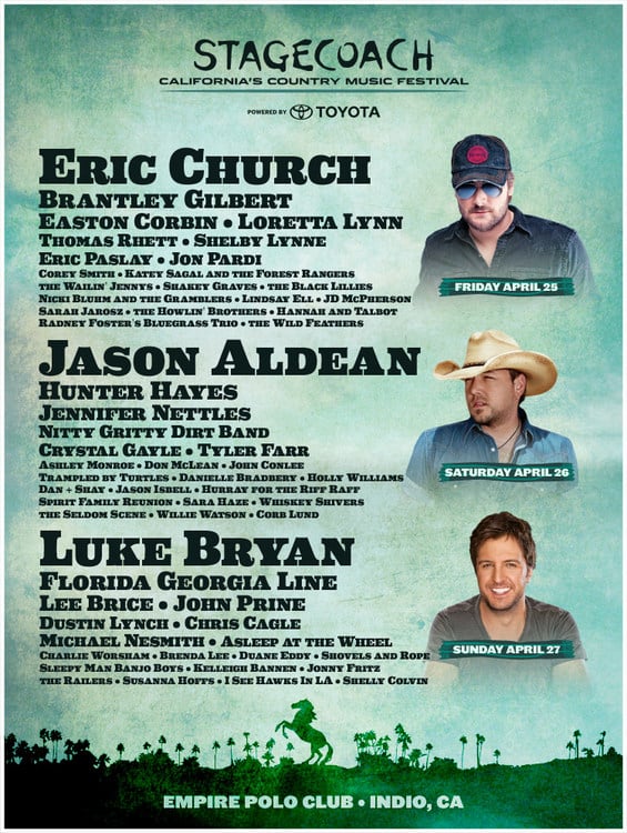 A couple of days ago, The Stagecoach Festival out in California announced their 2014 lineup, capped by headliners Eric Church, Jason Aldean, and Luke Bryan. Since its inception 7 years ago, Stagecoach has been the California contingent to America’s big corporate country music festivals, but what makes Stagecoach different is that they actually include independent and up-and-coming artists as well—something most festivals in the corporate country field either completely avoid, or only include with a few token names.